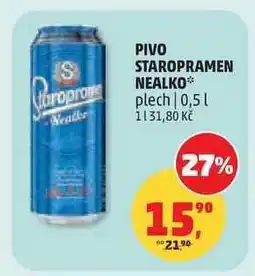 | Pivo staropramen nealko | Tesco | 21,90 Kč | 16,90 Kč | Sleva 23% | 31 března 2026 | 05 dubna 2026 |