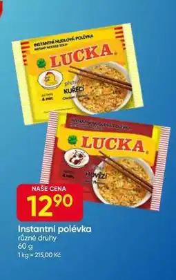 | LUCKA Instantní polévka různé druhy 60 g | Hruška | 12,90 Kč | 02 ledna 2026 | 06 ledna 2026 | |||
