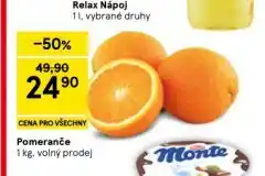 | Pomeranče 1 kg | Tesco | 49,90 Kč | 34,90 Kč | -30% | 17 září 2025 | 23 září 2025 | |