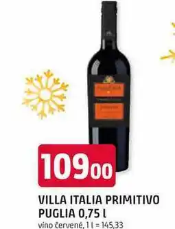 | VILLA ITALIA PRIMITIVO PUGLIA 0,75 L | Trefa | 109,00 Kč | 17 prosince 2025 | 31 prosince 2025 | |||