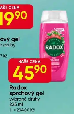 | Radox sprchový gel 225 ml | Globus | 45,90 Kč | 39,90 Kč | -13% | 28 ledna 2026 | 03 února 2026 | |