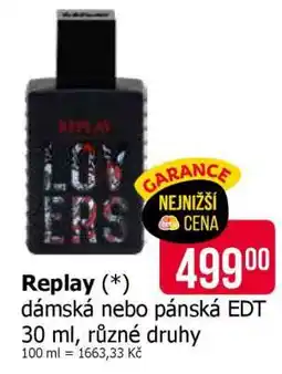 | Replay dámská nebo pánská EDT 30 ml, různé druhy | Teta | 449,00 Kč | 26 března 2026 | 07 dubna 2026 | |||