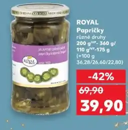 | 1 | ROYAL Papričky 200-360g/110-175 g | Kaufland | 69,90 Kč | 39,90 Kč | -42% | 27 prosince 2025 | 31 prosince 2025 | Zobrazit nabídku | |