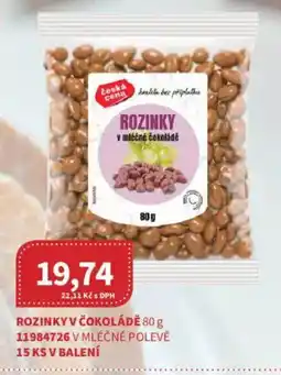 | 1 | Rozinky v čokoládě 80 g | Kubík potraviny | 19,74 Kč | 01 dubna 2026 | 30 dubna 2026 | Zobrazit nabídku | |||