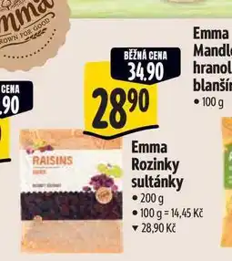 | Emma Rozinky sultánky 200 g | Albert | 34,82 Kč | 28,90 Kč | -17% | 04 března 2026 | 10 března 2026 | |
