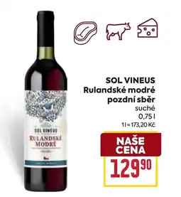 | SOL VINEUS Rulandské modré pozdní sběr suché 0.75L | Billa | 129,90 Kč | 04 března 2026 | 17 března 2026 | |||