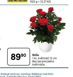 | Růže, 1 ks, květináč 12 cm, Bez keramického květináče | Tesco | 89,90 Kč | 07 ledna 2026 | 13 ledna 2026 | |||