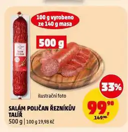 | SALÁM VYSOČINA ŘEZNÍKŮV TALÍŘ 700 g | Penny Market | 149,10 Kč | 99,90 Kč | -33% | 29 ledna 2026 | 04 února 2026 | |