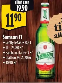 | Samson 11 0.5 L | Albert | 19,90 Kč | 11,90 Kč | 8,00 Kč Slevu | 28 ledna 2026 | 03 února 2026 | |