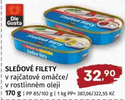 | DLE GUSTA SLEDOVÉ FILETY 170/85-102 g vybrané druhy | Terno | 29,90 Kč | 02 ledna 2026 | 06 ledna 2026 | |||