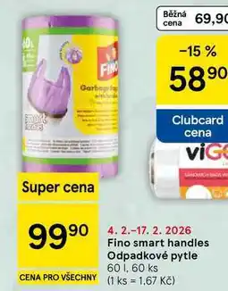 | Fino smart handles Odpadkové pytle 60 l, 60 ks | Tesco | 99,90 Kč | 11 února 2026 | 17 února 2026 | |||