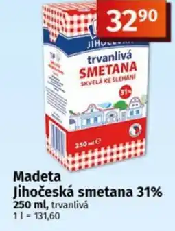 | Madeta jihočeská smetana trvanlivá 31% | Coop | 32,90 Kč | 16 července 2025 | 29 července 2025 | |||