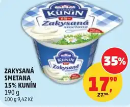 | Kunín Zakysaná smetana krémovitá 15% 190g 190 g | Penny Market | 27,54 Kč | 17,90 Kč | -35% | 18 března 2026 | 24 března 2026 | |
