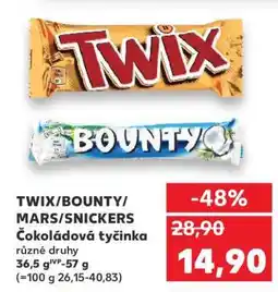 | SNICKERS/ MARS/ TWIX/ BOUNTY Čokoládové tyčinky | Kaufland | 59,90 Kč | 29 května 2024 | 04 června 2024 | |||