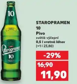 | STAROPRAMEN 10 Pivo 0.5 L | Kaufland | 16,90 Kč | 11,90 Kč | -29% | 11 února 2026 | 17 února 2026 | |
