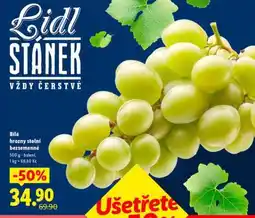 | BÍLÉ HROZNY STOLNÍ BEZSEMENNÉ | Lidl | 99,90 Kč | 59,90 Kč | 40,00 Kč Slevu | 12 října 2023 | 15 října 2023 |