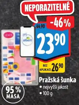 | PREMIUM Vepřová šunka 100 g | Albert | 31,50 Kč | 21,90 Kč | -30% | 14 ledna 2026 | 20 ledna 2026 | |