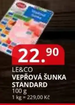 | Le&co vepřová šunka standard 100 g | Potraviny CZ | | 22,90 Kč | | 08 dubna 2026 | 20 dubna 2026 |