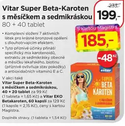 | Vitar Super Beta-karoten s měsíčkem a sedmikráskou | Magistra lékárny | 233,00 Kč | 185,00 Kč | 48,00 Kč Slevu | 30 března 2026 | 03 května 2026 |