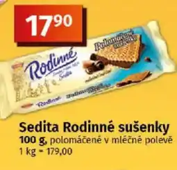 | Sedita Rodinné sušenky polomáčené 100 g | COOP TIP | 17,90 Kč | 27 srpna 2025 | 09 září 2025 | |||