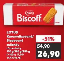 | LOTUS Karamelizované/ Slepované susenky 150 g/186 g/250 g | Kaufland | 49,90 Kč | 26,90 Kč | -46% | 03 září 2025 | 09 září 2025 | |