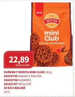 | SEDITA Sušenky mini club 160 g | Kubík potraviny | 23,49 Kč | 01 prosince 2025 | 31 prosince 2025 | |||