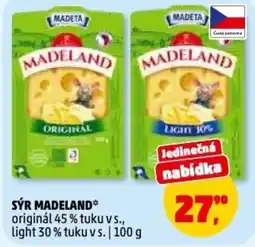 | Madeta Madeland sýr 100g, vybrané druhy 100 g | Penny Market | 27,90 Kč | 29 ledna 2026 | 04 února 2026 | |||