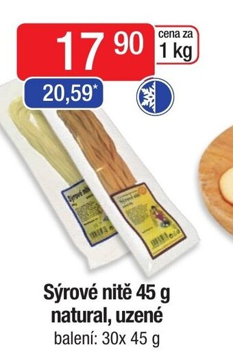 | Sýrové nitě 45 g natural, uzené | Qanto | 17,90 Kč | 01 září 2023 | 30 září 2023 |