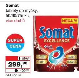 | Somat tablety do myčky 50 ks, vybrané druhy | Barvy a laky drogerie | 299,90 Kč | 01 března 2025 | 23 března 2025 | |||