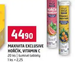 | MAXIVITA EXCLUSIVE HOŘČÍK, VITAMIN C 20 ks šumivé tablety | Terno | 44,90 Kč | 04 března 2026 | 10 března 2026 | |||