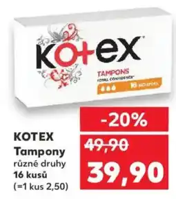 ![]() | KOTEX Tampony | Kaufland | 49,90 Kč | 39,90 Kč | -20% | 24 září 2025 | 30 září 2025 |