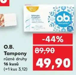 ![]() | O.B. Tampony | Kaufland | 168,90 Kč | 99,90 Kč | -40% | 05 března 2025 | 11 března 2025 |