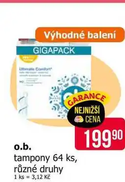 | O.b tampony | Teta | 289,90 Kč | 199,90 Kč | 90,00 Kč Slevu | 18 července 2024 | 30 července 2024 | |