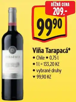 | Viña Tarapacá 0.75 L | Albert | 209,00 Kč | 99,90 Kč | 109,10 Kč Slevu | 27 prosince 2025 | 31 prosince 2025 | |