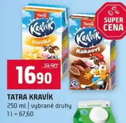| Tatra Kravík Ochucené mléko 250 ml | Tesco | 21,90 Kč | 14,90 Kč | -31% | 07 dubna 2026 | 14 dubna 2026 | |