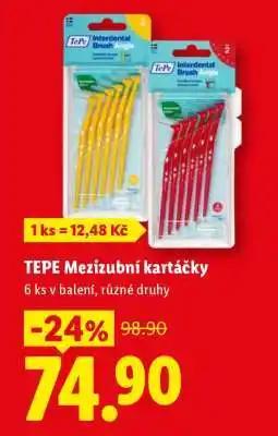 | 4 | TEPE Mezizubní kartáčky, 6 ks | Lidl | 98,55 Kč | 74,90 Kč | -24% | 27 dubna 2026 | 30 dubna 2026 | Zobrazit nabídku | |