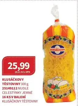 | 2 | Klusáčkovy těstoviny 300 g | Kubík potraviny | 25,99 Kč | 01 dubna 2026 | 30 dubna 2026 | Zobrazit nabídku | |||