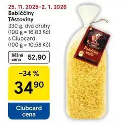 | Babiččiny těstoviny | Tesco | 34,90 Kč | 24 září 2025 | 30 září 2025 | |||