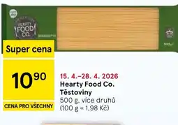 | Hearty Food Co. Těstoviny 500 g | Tesco | 10,90 Kč | 15 dubna 2026 | 21 dubna 2026 | |||