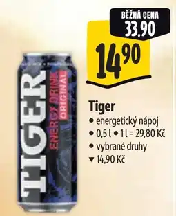 | Tiger Energy drink 500ml, vybrané druhy 500 ml | Flop | 17,90 Kč | -45% | 14 ledna 2026 | 20 ledna 2026 | ||