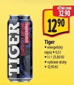 | Tiger Energy drink 500ml, vybrané druhy 500 ml | Albert | 32,25 Kč | 12,90 Kč | -60% | 15 dubna 2026 | 21 dubna 2026 | |