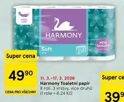 | Harmony Toaletní papír 3-vrstvý, vybrané druhy 8ks | Tesco | 49,90 Kč | 26 listopadu 2025 | 02 prosince 2025 | |||