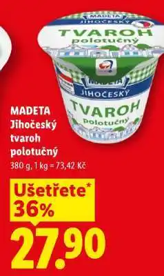 | Madeta Jihočeský tvaroh polotučný | Lidl | 27,90 Kč | 27 dubna 2026 | 30 dubna 2026 | |||