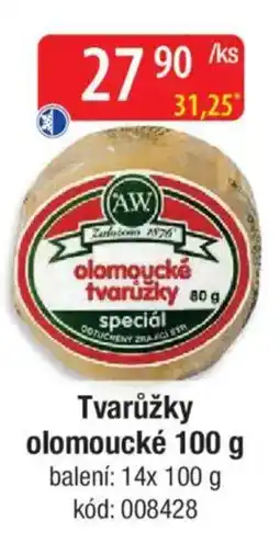 | A.W. Olomoucké tvarůžky velké 167g 167 g | CBA | 49,90 Kč | 08 dubna 2026 | 14 dubna 2026 | |||