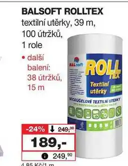 | BALSOFT ROLLTEX textilní utěrky, 39 m, 100 útržků, 1 role | Barvy a laky drogerie | 189,00 Kč | 01 února 2024 | 21 února 2024 | |||