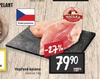 | Vepřové koleno 1 kg | Billa | 109,90 Kč | 79,90 Kč | -27% | 27 listopadu 2024 | 03 prosince 2024 | |