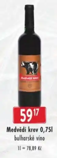 | Medvědí krev bulharské víno 0.75 L | Astur&Qanto | 59,17 Kč | 11 února 2026 | 10 března 2026 | |||