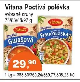 | VITANA Poctivá polévka 78/83/85/88/97 g | COOP DISKONT | 29,90 Kč | 21 května 2025 | 03 června 2025 | |||