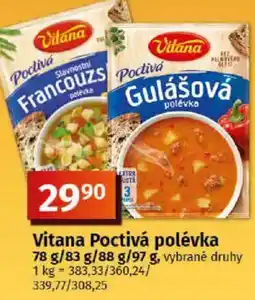 | Vitana Poctivá polévka 78/83/88/97 g | COOP TIP | | 29,90 Kč | | 08 dubna 2026 | 21 dubna 2026 |