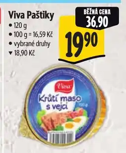 | 1 | Viva Paštiky 120 g | Albert | 36,90 Kč | 19,90 Kč | 17,00 Kč Slevu | 18 února 2026 | 24 února 2026 | Zobrazit nabídku | |